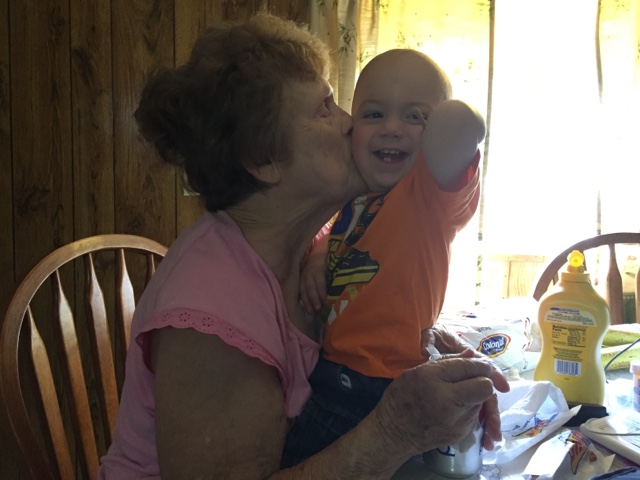 We celebrated 50¢ corn dogs from Sonic today with Granny! JohnDavid thoroughly enjoyed vacuuming and mopping at her house as well as her fenced in yard!